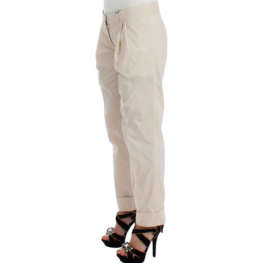 Ermanno Scervino Beige Mid Waist Cropped Cotton Trouser Pants