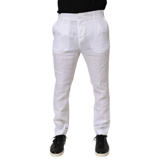 Daniele Alessandrini White Linen Formal Dress Trouser Pants