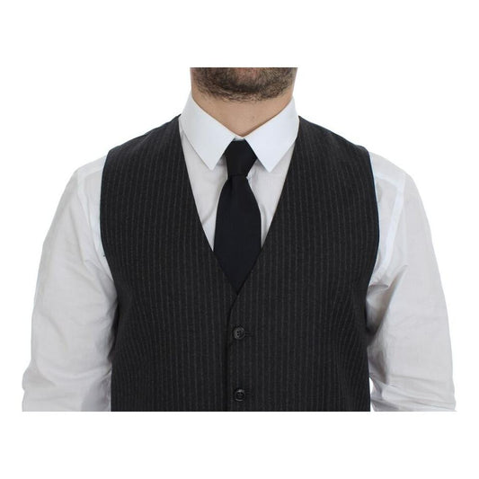 Dolce & Gabbana Gray Striped Wool Single Breasted Vest
