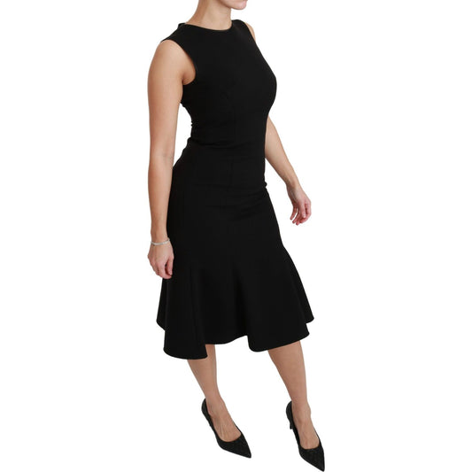 Dolce & Gabbana Black Fit Flare Wool Stretch Sheath Dress